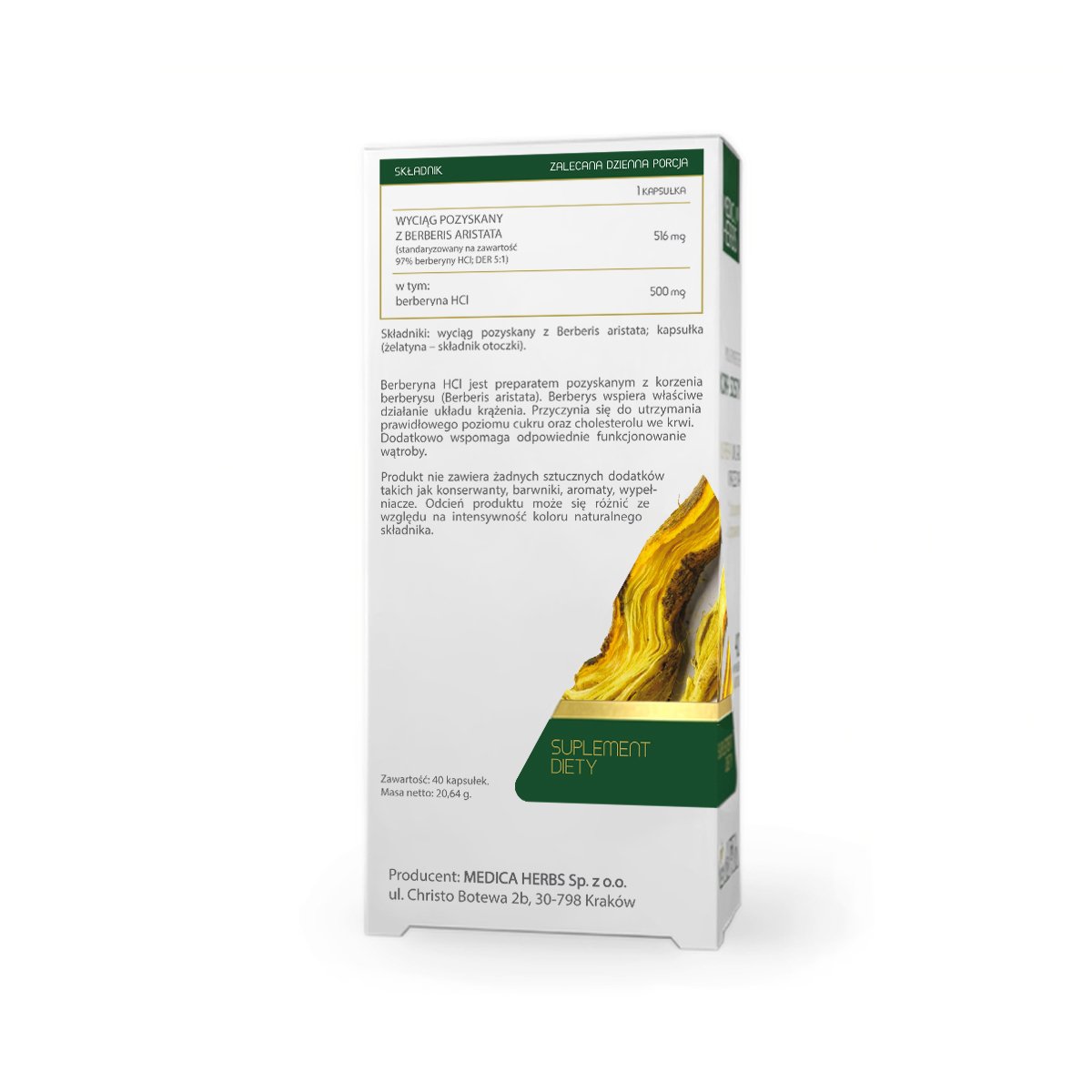 Berberyna HCl jest preparatem pozyskanym z korzenia berberysu (Berberis aristata). Berberys wspiera właściwe działanie układu krążenia. Przyczynia się do utrzymania prawidłowego poziomu cukru oraz cholesterolu we krwi. Dodatkowo wspomaga odpowiednie funkcjonowanie wątroby.