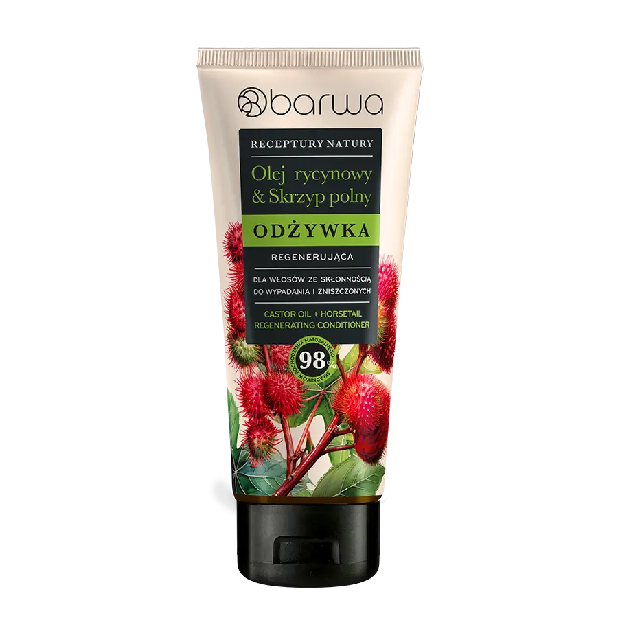 Zastosowanie: Odżywka regenerująca z olejem rycynowym i skrzypem polnym jest przeznaczona do włosów słabych, zniszczonych ze skłonnością do wypadania.
